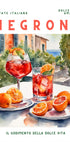 Eloisa akvarellijuliste, jossa juhlitaan ikonista Negroni-cocktailia unenomaista italialaista kesätaustaa vasten. Aurinkoisia appelsiineja, virkistäviä juomia ja ripaus välimerellistä charmia sisältävä taideteos vangitsee la dolce vita– täydellinen keittiön seinille, baareille tai kaikille ajattoman italialaisen tyylin ystäville.