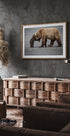 Tämä sydäntä lämmittävä luontokuva vangitsee hellän hetken karhunpennun ja sen emon välillä, kun pikkuinen painautuu rakkaudella hänen kasvojaan vasten. Se on täynnä lämpöä, leikkiä ja suojaa, ja se symboloi perhesiteitä ja luonnon kauneutta – täydellinen taideteos omistautumisesta ja erämaan viehätysvoimasta.