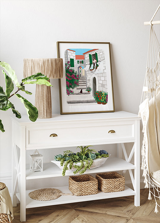 - Painettu kestävälle puuvillakankaalle, jossa on luonnollinen pinta