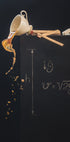 Tämä luova asetelma yhdistää tieteen ja taiteen, jossa kahvikuppi kaatuu ilmassa vapaan pudotuksen yhtälöitä sisältävän taulun vieressä. Yhdistelemällä liikettä, matematiikkaa ja arjen esineitä syntyy humoristinen ja ajatuksia herättävä taideteos, joka juhlii uteliaisuutta, fysiikkaa ja ideoiden kauneutta.