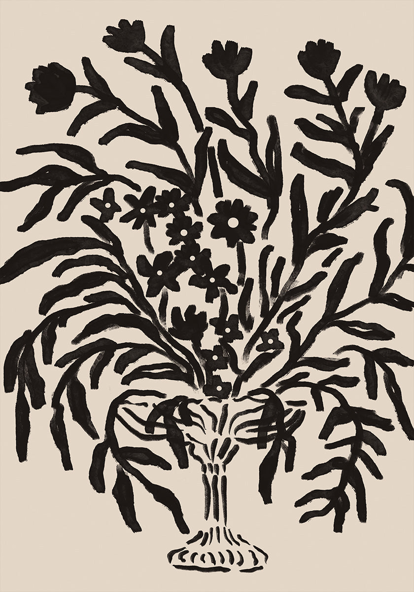 Valkoinen ruoka: Motiivi on painettu valkoisella, mattareunuksella kuvion ympärillä. Tämä antaa puhtaan ja tyylikkään ilmeen, joka korostaa aihetta ja antaa galleriahenkisen ilmeen.