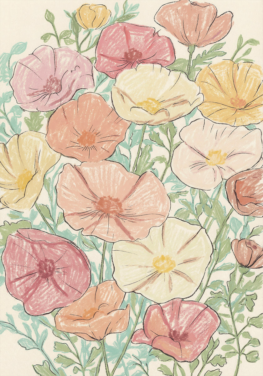 Koko suunnittelu: Motiivi on painettu reunasta reunaan ja peittää koko julisteen pinnan ilman reunuksia.