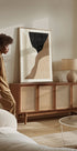 Rauhallinen minimalistinen juliste, jossa on virtaavia orgaanisia muotoja pehmeän beigen, lämpimän ruskean ja syvän mustan sävyissä. Neutraali paletti ja Japanin inspiroima yksinkertaisuus yhdistävät taideteoksen modernin eleganssin ja luonnollisen seesteisyyden – täydellinen nykyaikaiseen sisustukseen, skandinaaviseen sisustukseen tai rauhallisiin gallerian seiniin.
