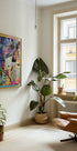Tässä abstraktissa julisteessa on silmiinpistävä värien ja tekstuurin räjähdysmäinen räjähdysmäinen värimaailma, ja siinä yhdistyvät rohkeat siveltimen vedot, tippuva maali ja kerroksittainen graffitien inspiroimia yksityiskohtia. Neonvaaleanpunainen, sähkösininen ja kirkkaat keltaiset tummempia kontrasteja vastaan luovat raakaa ja energistä ilmettä – täydellinen moderniin sisustukseen ja nykytaiteen ystäville.