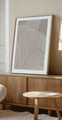 Minimalistinen abstrakti juliste orgaanisilla, virtaavilla valkoisilla viivoilla pehmeällä beigellä taustalla. Hienot, rytmiset kuviot tarjoavat liikettä ja tekstuuria ja yhdistävät luonnollisen eleganssin moderniin muotoiluun. Täydellinen moderniin sisustukseen, joka haluaa rauhallista seinätaidetta neutraaleilla sävyillä.