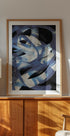 Dynaaminen abstrakti juliste, jossa on laajat siveltimen vedot sinisen, mustan ja valkoisen kerroksittain. Energinen tekstuurin virtaus luo rytmin ja liikkeen tunteen yhdistäen nykyaikaisen ilmaisun maalaukselliseen eleganssiin – täydellinen skandinaaviseen sisustukseen, moderniin sisustukseen tai näyttäviin gallerian seiniin.