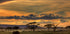 Henkeäsalpaava juliste Afrikan savannista auringonlaskun aikaan kultaisilla taivailla, hajallaan pilvillä ja akaasiapuilla, jotka kohoavat majesteettisesti sumuisten tasangoiden yllä. Elefantti laiduntaa etualalla ja vangitsee Tansanian villieläinten ja luonnon raakaa kauneutta. Täydellinen safarin ja maiseman ystäville.