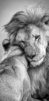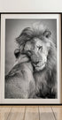 Koskettava mustavalkoinen villieläinjuliste, jossa leijona ja leijona hellästi syleilevät. Tämä Tansanian Serengetissä vangittu taideteos symboloi rakkautta, voimaa ja omistautumista luonnossa. Täydellinen luontoon, eläimiin ja romanttisiin sisätiloihin.