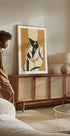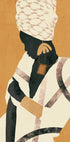Silmiinpistävä minimalistinen juliste, jossa on tyylikäs afrikkalainen nainen rohkeilla koruilla ja kuviollisella huivilla. Maanläheiset keltaiset ja mustat sävyt yhdistävät modernia abstraktiota kulttuuriseen rikkauteen, tehden siitä vahvan elementin moderneissa ja boho-vaikutteisissa sisätiloissa.