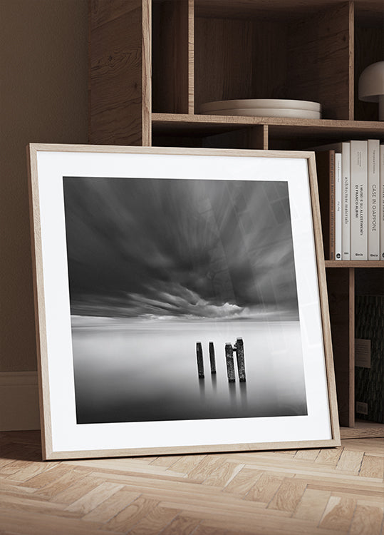 George Digalakisin Time after Time vangitsee runollisen mustavalkoisen merimaiseman: kuluneet pylväät seisovat rytmisinä merkkeinä tyynessä, silkkisessä vedessä, kun taas matalat pilvet ajelehtivat horisontin poikki. Pitkä valotus luo rauhallisen, ajattoman melankolisen, tuulisen ja myrskyn jälkeisen tunnelman. Meditiivinen äärettömyyden tunne.