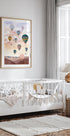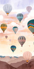 Unenomainen juliste, jossa värikkäät kuumailmapallot kelluvat pastellin taivaan ja vuorenhuippujen yllä. Taideteos ilmaisee seikkailun, vapauden ja ilon tunteen - ihanteellinen lastenhuoneeseen, matkan ystäville tai kohottavana seinätaideena.
