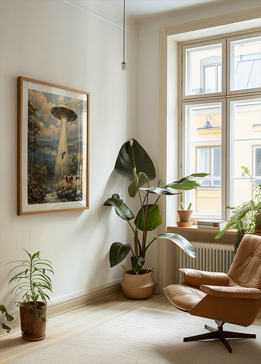 Valkoinen ruoka: Motiivi on painettu valkoisella, mattareunuksella kuvion ympärillä. Tämä antaa puhtaan ja tyylikkään ilmeen, joka korostaa aihetta ja antaa galleriahenkisen ilmeen.