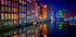 Loistava yönäkymä Amsterdamin ikonisiin kanavataloihin, joissa värikkäät julkisivut hehkuvat valossa ja heijastuvat täydellisesti tyynessä vedessä. Tämä eloisa kaupunkikuva juhlistaa hollantilaista arkkitehtuuria, urbaania charmia ja maagisia heijastuksia, jotka tekevät Amsterdamista unohtumattoman pimeän jälkeen.