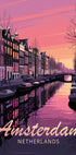 Tunnelmallinen aihe Amsterdamista: rauhallinen kanava, jossa pienet veneet liukuvat klassisen sillan alla, reunustaa kapeita, lämpimän sävyisiä harjakattoisia taloja ja vihreitä puita. Andreas Magnusson vangitsee elegantissa retro-ilmeessä kaupungin ajattoman viehätyksen, vaeltamisen ja arjen – katseenvangitsija, joka luo rauhallisuutta ja läsnäoloa.