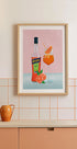 Raikas ja eloisa kuva Aperol Spritzistä, jossa on pullo, sitrushedelmiä ja cocktaillasi jäällä ja appelsiinilla pehmeää vaaleanpunaista taustaa vasten. Legendaarinen ja värikäs taideteos vangitsee italialaisen kesän ja aperitiivikulttuurin olemuksen, ja se sopii täydellisesti keittiöihin, baareihin ja sosiaalisiin tiloihin.