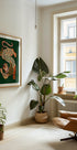 Silmiinpistävä abstrakti kuva tyylitellystä tiikeristä eloisissa väreissä voimakkaan vihreää taustaa vasten. Taideteoksessa yhdistyvät geometriset kuviot, virtaavat linjat ja eloisat tekstuurit luodakseen modernin tulkinnan kissan hengestä. Ainutlaatuinen eläinvaikutteinen taideteos modernin muotoilun ystäville.