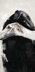 Ilmeikäs digitaalinen maalaus kahdesta vinttikoirasta rakastavassa syleilyssä, joiden vartalot limittyvät hellässä asennossa. Taideteoksessa yhdistyvät realistiset koiramuotokuvat abstrakteihin siveltimen vedoin ja kukkayksityiskohtiin, mikä luo harmonisen tasapainon tunteiden ja taiteen välille. Koskettava kappale, joka symboloi rakkautta, kiintymystä ja ystävyyttä.