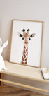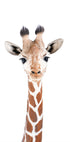 Ihana korkean tason muotokuva kirahvivasikasta puhtaan valkoista taustaa vasten. Tyylikkäät kuviot, lempeät silmät ja pitkä kaula korostavat tämän nuoren villieläimen suloisuutta ja kauneutta. Täydellinen lastenhuoneeseen, eläinten ystäville tai moderniin minimalistiseen sisustukseen.