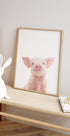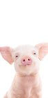 Sydäntälämmittävä muotokuva porsaasta puhtaan valkoista taustaa vasten. Vaaleanpunainen kuono-osa, lempeät silmät ja leikkisä ilme luovat viattomuuden ja viehätyksen tunteen. Täydellinen maatilan sisustukseen, lastenhuoneisiin tai kaikille, jotka rakastavat söpöjä eläinmuotokuvia.