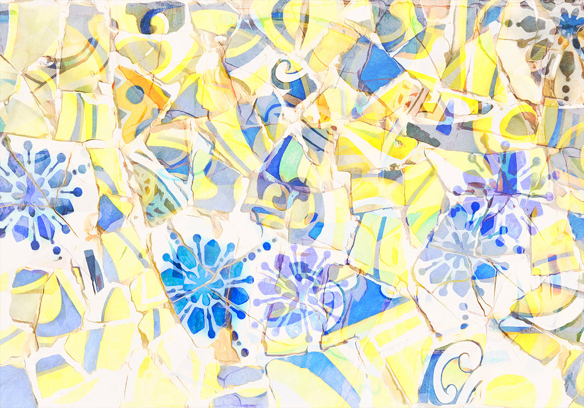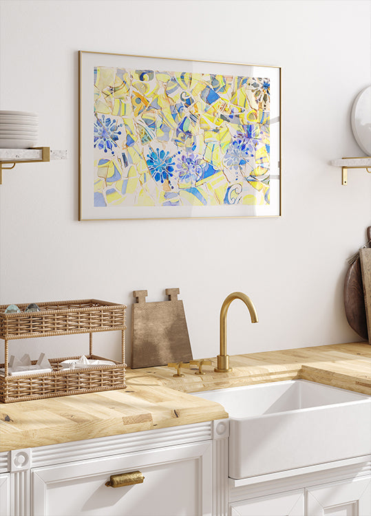 Koko suunnittelu: Motiivi on painettu reunasta reunaan ja peittää koko julisteen pinnan ilman reunuksia.