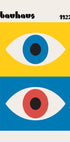 Erottuva Bauhausin inspiroima juliste, jossa on kaksi tyyliteltyä silmää voimakkaissa keltaisen, sinisen, punaisen ja mustan värilohkoissa. Tämä abstrakti muotoilu vangitsee Bauhaus 1923:n olemuksen yhdistelmällä minimalistisia muotoja ja silmiinpistäviä kontrasteja. Täydellinen niille, jotka rakastavat vintagea, ikonista ja modernistista muotoilua.