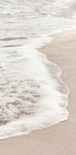 Rauhoittava minimalistinen valokuva lempeistä valtameren aalloista huuhtelemassa hiekkarannan yli. Pehmeillä beigen sävyillä ja hienoilla rakenteilla teos vangitsee meren rauhallisen rytmin ja yksinkertaisuuden ajattoman kauneuden.