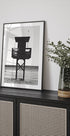 Silmiinpistävä mustavalkoinen rannikkovalokuva, jossa merenpelastajatorni seisoo korkealla rannalla. Voimakkaat kontrastit korostavat tornin geometrista rakennetta tyyniä merihorisonttia vasten. Minimalistinen mutta voimakas taideteos, joka sopii täydellisesti moderniin sisustukseen rannikolla tai yksivärisellä ilmeellä.