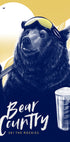 Rohkea ja leikkisä taideteos, joka kuvaa hiihtolaseja käyttävää karhua pitelemässä suksia ja juomaa, taustalla lumiset vuoret. Vuoristoelämää, hiihtokulttuuria ja alppiseikkailua juhliva tämä humoristinen mutta tyylikäs printti on hauska lisä talven tai mökin sisustukseen.
