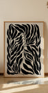 Rohkea ja tyylikäs juliste, jossa on abstrakteja mustia lehtisiluetteja beigellä taustalla. Tässä minimalistisessa kasvitieteellisessä taideteoksessa yhdistyvät orgaaniset muodot voimakkaisiin kontrasteihin, mikä sopii täydellisesti moderniin ja nykyaikaiseen sisustukseen.