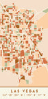 Las Vegasin mieleenpainuva kartta Emiliano Deificuksen tulkitsemana: tiiviisti kudottu katuverkosto ja omaleimaiset bulevardit, jotka on piirretty syvin mustin viivoin lämpimiä maan sävyjä vasten. Aavikon värit kohtaavat kaupungin tarkan geometrian, ja pienet yksityiskohdat, kuten joet, kaupunginosat ja koordinaatit, luovat elegantin, modernin ilmeen. Kontrastit ja tekstuurit korostavat kaupungin rytmiä.