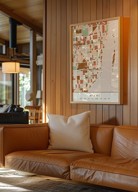 Emiliano Deificuksen Black Maps Earth Tones 53 on tunnelmallinen kaupunkikarttajuliste syvin maan sävyin. Hienot linjat piirtävät Miamin kadut, rannikon ja kaupunginosat tyylikkäällä, graafisella ilmeellä. Minimalistinen ja urbaani, se lisää rauhallisuutta ja luonnetta muuriin ja kutsuu sinut tutustumaan kaupunkiin. Täydellinen olohuoneeseen, toimistoon tai eteiseen.
