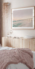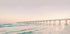 Rauhallinen rannikkonäköala, jossa pitkä laituri, joka ulottuu mereen, kylpee pehmeissä pastelliväreissä auringonlaskun aikaan. Aallot ja tyyni taivas luovat rauhallisen tunnelman, joka on täydellinen rauhan ja harmonian herättämiseen.