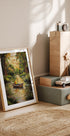Humoristinen parodiateos, jossa yhdistyy klassinen öljymaalausmaisematyylinen tyyli ja popkulttuuri. Kohtaus näyttää sarjakuvahahmon, joka kalastaa rauhallisesti puuveneessä rehevien puiden ja hehkuvan joen ympäröimänä. Leikkisä sekoitus luontoa ja surrealistista huumoria, täydellinen omituisen seinätaiteen ystäville.