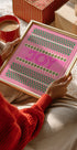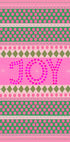 Aliya Putrusin Bright Joy säteilee juhlavaa tunnelmaa: sana JOY koostuu geometrisista muodoista ja ommelmaisista kuvioista, jotka muistuttavat kirjontaa ja tilkkutöitä. Raikkaat vaaleanpunaiset ja vihreät, paljettien välähdykset ja peittojen inspiroimat kentät luovat eloisan, talvisen kunnianosoituksen ilolle ja värikkäälle optimismille.