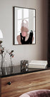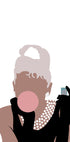 Tämä kuvitus on leikkisä, moderni tulkinta klassisesta ikonista, ja siinä näkyy lumoava helmipukuinen nainen puhaltamassa kumia. Minimalistinen tyyli ja voimakkaat kontrastit yhdistävät vintage-eleganssin ja röyhkeän pop-taiteen, joka on täydellinen muodin ystäville ja moderniin sisustukseen.