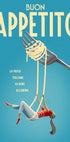Värikäs ja leikkisä italialaisvaikutteinen juliste, jossa on kuva naisesta, joka heiluu pastalangoilla haarukan ympärille. Ihastuttavalla tekstillä Buon Appetito se juhlii italialaisen ruoan iloa ja sen sielukasta mukavuutta, huumoria ja tyyliä sekoituksella katseenvangitsijassa taideteoksessa.