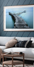 Rauhallinen pitkä valotusvalokuva Carrasqueiran puusillasta Portugalissa, joka ulottuu tyynille turkooseille vesille. Silkkinen meri ja maalaismaiset laudat luovat ajattoman ja rauhallisen rannikkomaiseman, joka sopii täydellisesti rauhalliseen seinätaideeseen.