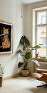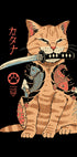 Vincent Trinidadin rohkea ja leikkisä taideteos, joka kuvaa tatuoitua samurai-kissaa katana suussaan. Tämä japanilaistyylinen muotoilu yhdistää perinteiset koi-tatuointiaiheet moderniin popkulttuuriin, mikä tekee siitä ainutlaatuisen seinätaiteen kissan ystäville ja japanilaisen estetiikan ystäville.