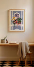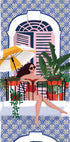 Eloisa kuva naisesta rentoutumassa parvekkeella punaisessa uimapuvussa rehevien kasvien ja sinikuvioisten laattojen ympäröimänä. Tämä taideteos, jossa aurinkolasit ja päivänvarjo, vangitsee kesäloman ja välimerellisen tunnelman. Täydellinen seinätaide niille, jotka rakastavat tyylikkäitä, aurinkoisia ja loman inspiroimia sisätiloja.