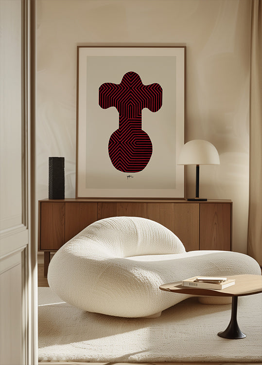 Valkoinen ruoka: Motiivi on painettu valkoisella, mattareunuksella kuvion ympärillä. Tämä antaa puhtaan ja tyylikkään ilmeen, joka korostaa aihetta ja antaa galleriahenkisen ilmeen.