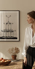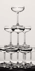Näyttävä mustavalkoinen asetelma samppanjatornista. Tyylikäs, minimalistinen ja heijastava taideteos symboloi juhlaa ja tyyliä, sopii täydellisesti keittiöön, baareihin tai moderniin sisustukseen.