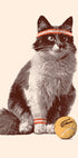 Leikkisä vintage-tyylinen juliste, jossa on tennispelaajaksi pukeutunut pörröinen kissa, jossa on hikinauha ja Wilsonin tennispallo. Humoristisessa ja tyylikkäässä muotoilussa urheilu yhdistyy kissan viehätysvoimaan, mikä tekee tästä hauskan ja katseenvangittavan kappaleen eläinten ystäville ja urheilun ystäville.