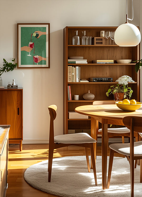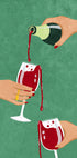 Värikäs kuva käsistä, jotka kaatavat punaviiniä lasiin, joissa viini tulvii yli leikkisästi ja juhlallisesti. Voimakkailla väreillä ja tyylikkäillä yksityiskohdilla teos vangitsee kokoontumisen, cocktailien ja yhteisten hetkien ilon ja siitä tulee tyylikäs ja eloisa piirre moderniin sisustukseen.