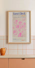 Leikkisä ja trendikäs juliste, jossa on vintage-tyylinen ravintolavieraskortti, jonka päällä on vaaleanpunaisia luonnoskuvia cocktaileista ja paahtolaseista. Sekoitus typografiaa ja graafista taidetta luo rohkean, modernin muotoilun, joka sopii täydellisesti keittiöön, baariin tai jokaiselle, joka rakastaa omituisia julistetulosteita.