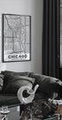 Tyylikäs, yksivärinen kunnianosoitus Chicagolle: kirjaimet ja graafiset elementit yhdistyvät rauhalliseksi, tasapainoiseksi motiiviksi, joka korostaa kaupungin luonnetta mustavalkoisena. Minimalistinen ja retro samaan aikaan, täydellinen antamaan kotiin urbaania tunnelmaa. Suunnittelija StudioSix. Sopii hyvin eteiseen, olohuoneeseen tai toimistoon ja sopii sekä moderniin että vintage-sisustukseen.