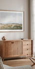 Dan Hobdayn rauhallinen abstrakti maisema maanläheisillä sävyillä ja pehmeillä siveltimen vedoilla. Vihreän, beigen ja harmaan sävyt sulautuvat rauhalliseen horisonttiin, mikä luo rauhallisuuden ja ajattomuuden tunteen. Täydellinen maalaistalotyylisiin sisätiloihin, moderneihin minimalistisiin koteihin tai osaksi luonnon inspiroimaa kuvaseinää.