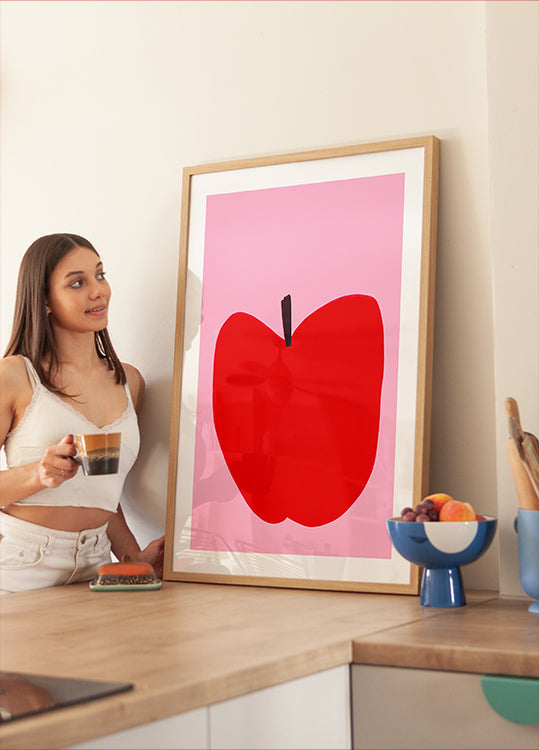 Valkoinen ruoka: Motiivi on painettu valkoisella, mattareunuksella kuvion ympärillä. Tämä antaa puhtaan ja tyylikkään ilmeen, joka korostaa aihetta ja antaa galleriahenkisen ilmeen.