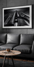Darth Vader's house af Jorge Ruiz Dueso indfanger Madrids Cuatro Torres i dramatisk sort/hvid. Skyskrabernes futuristiske linjer, skarpe vinkler og glitrende lys skaber en stærk, grafisk silhuet mod nattehimlen – en urban scene med dybde, rytme og en sci-fi aura. Inspireret af CTBA's ikoniske skyline leder motivet tankerne mod Star Wars' mystik.