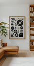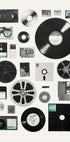 Nostalginen yhdistelmä vintage-mediaa ja tallennusmuotoja, kuten vinyylilevyjä, kasetteja, levykkeitä, CD-levyjä ja filmirullia. Tämä taideteos juhlii tekniikan ja musiikin kehitystä ja tuo retrotajua moderniin sisustukseen.