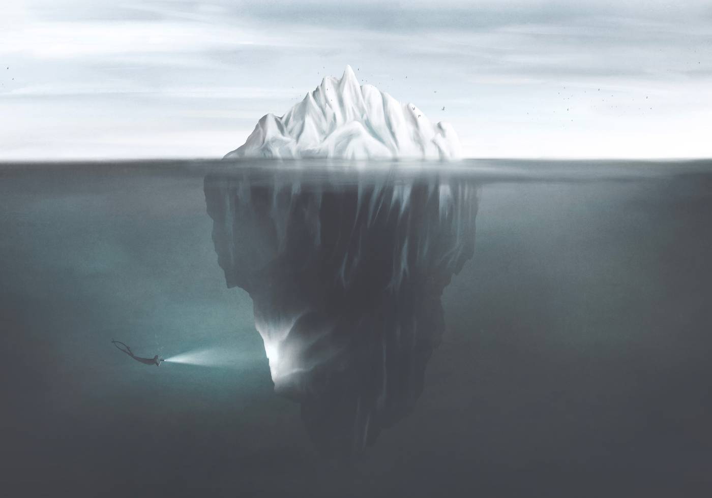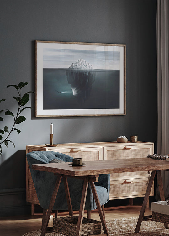 Ajatuksia herättävä taideteos, joka kuvaa jäävuorta, jonka alla piilee syvyys ja jossa yksinäinen sukeltaja tutkii merta. Aihe symboloi piilevää potentiaalia, näkymätöntä ponnistelua ja usein unohdettua tiedon syvyyttä. Täydellinen toimistoihin, luoviin studioihin tai inspiroiviin ympäristöihin visuaalisena muistutuksena menestyksen takana piilevästä.